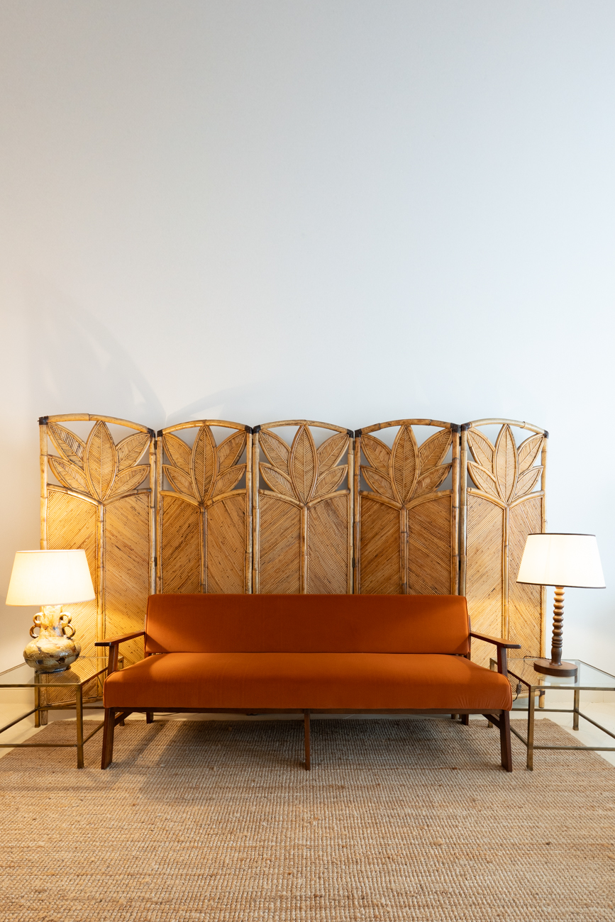 Burnt orange velvet sofa