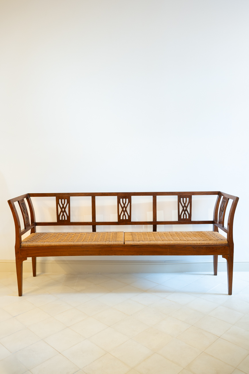 Large oak bench with sisal seat