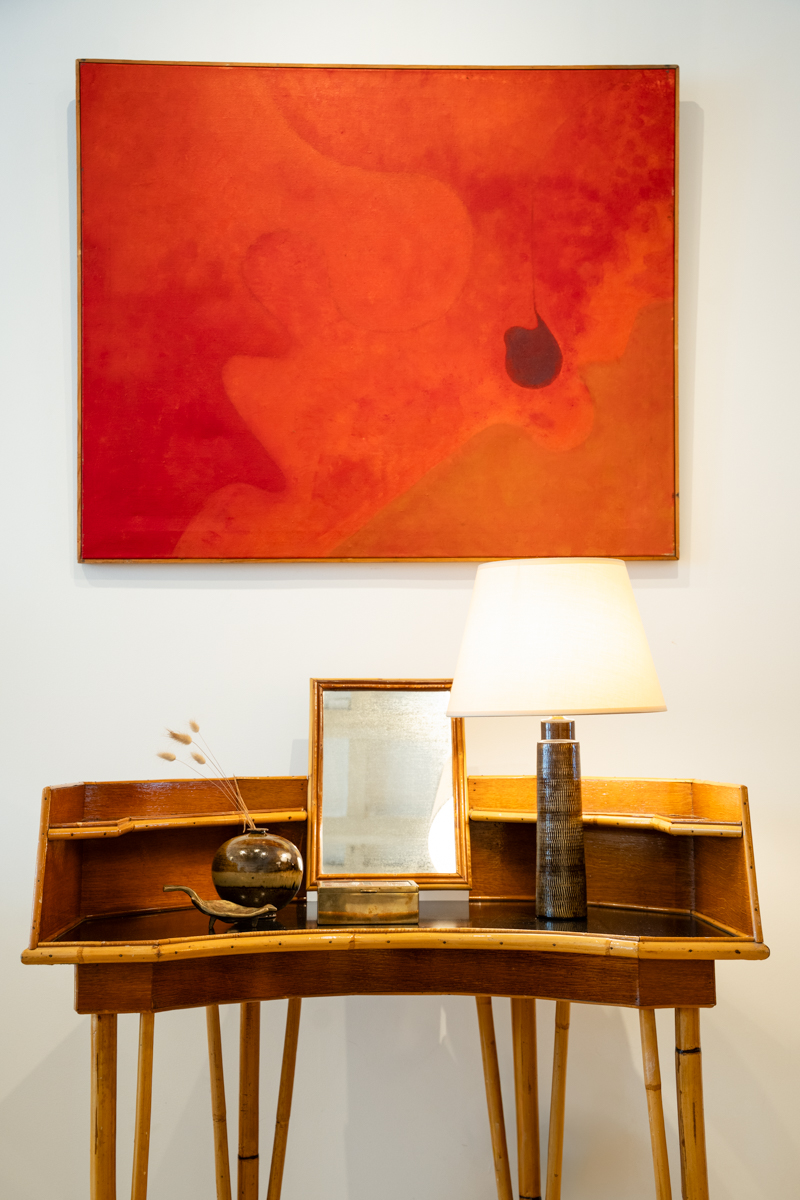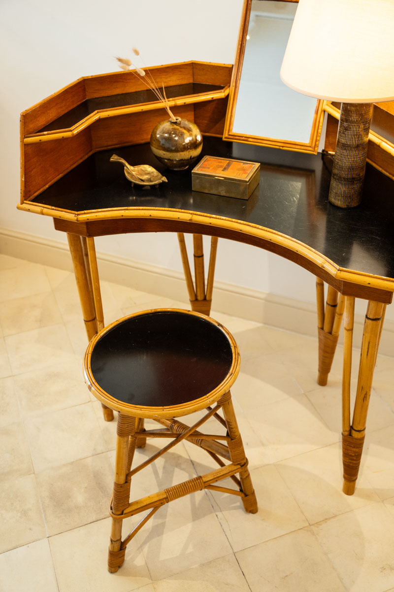 France, mid-20th century. 89 cm wide, 56 cm deep and 90 cm high. Stool, 51 cm high and 34 cm in diameter.