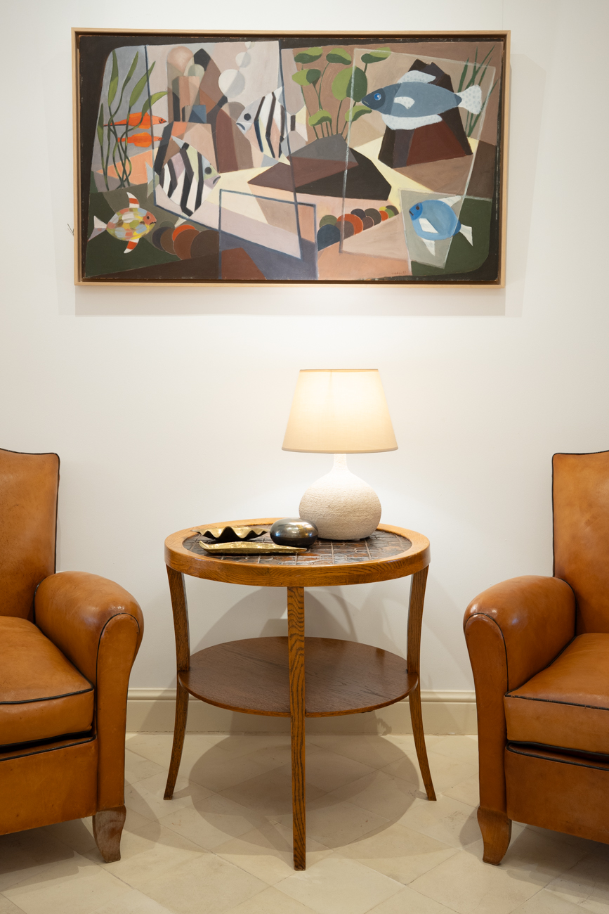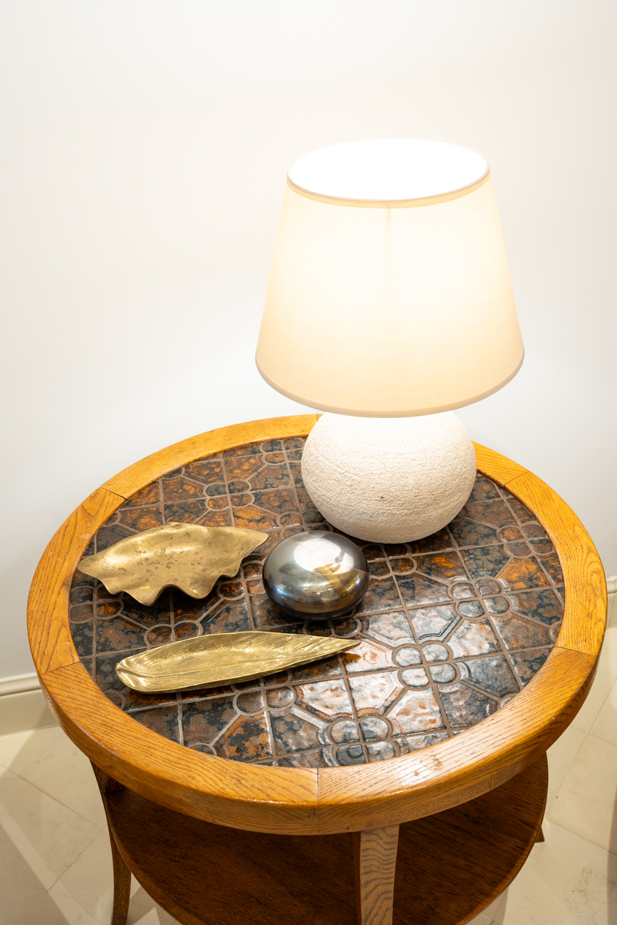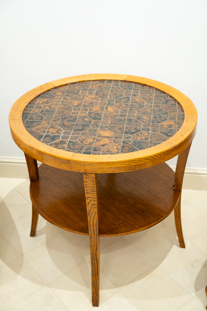 Oak and ceramic side table