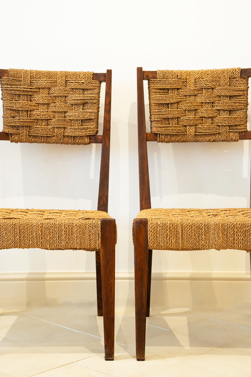Pair of oak and sisal chairs