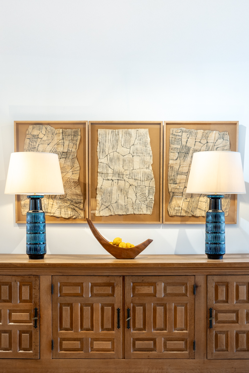 Pareja de grandes lámparas de cerámica esmaltada