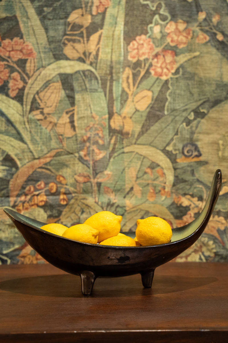 Cesta de mimbre con borde de latón