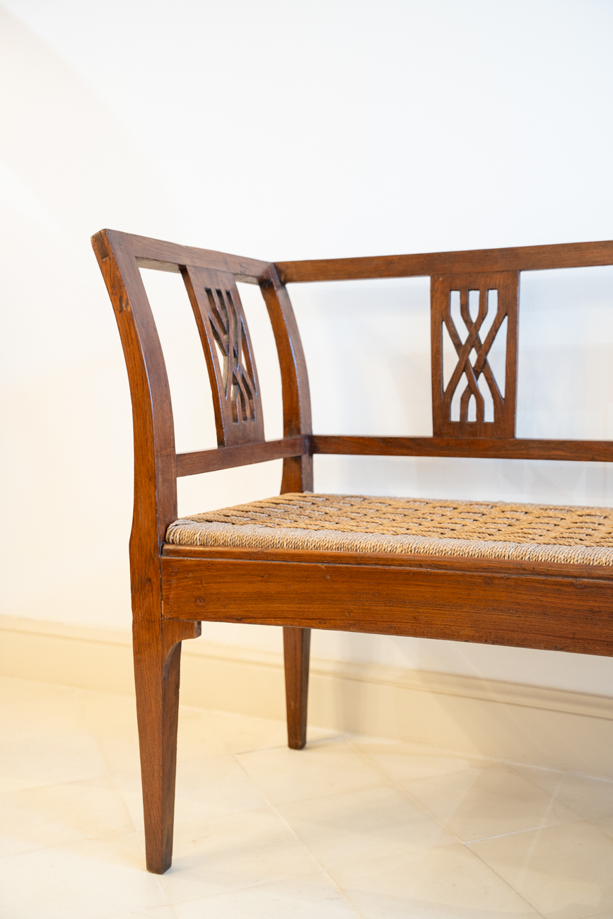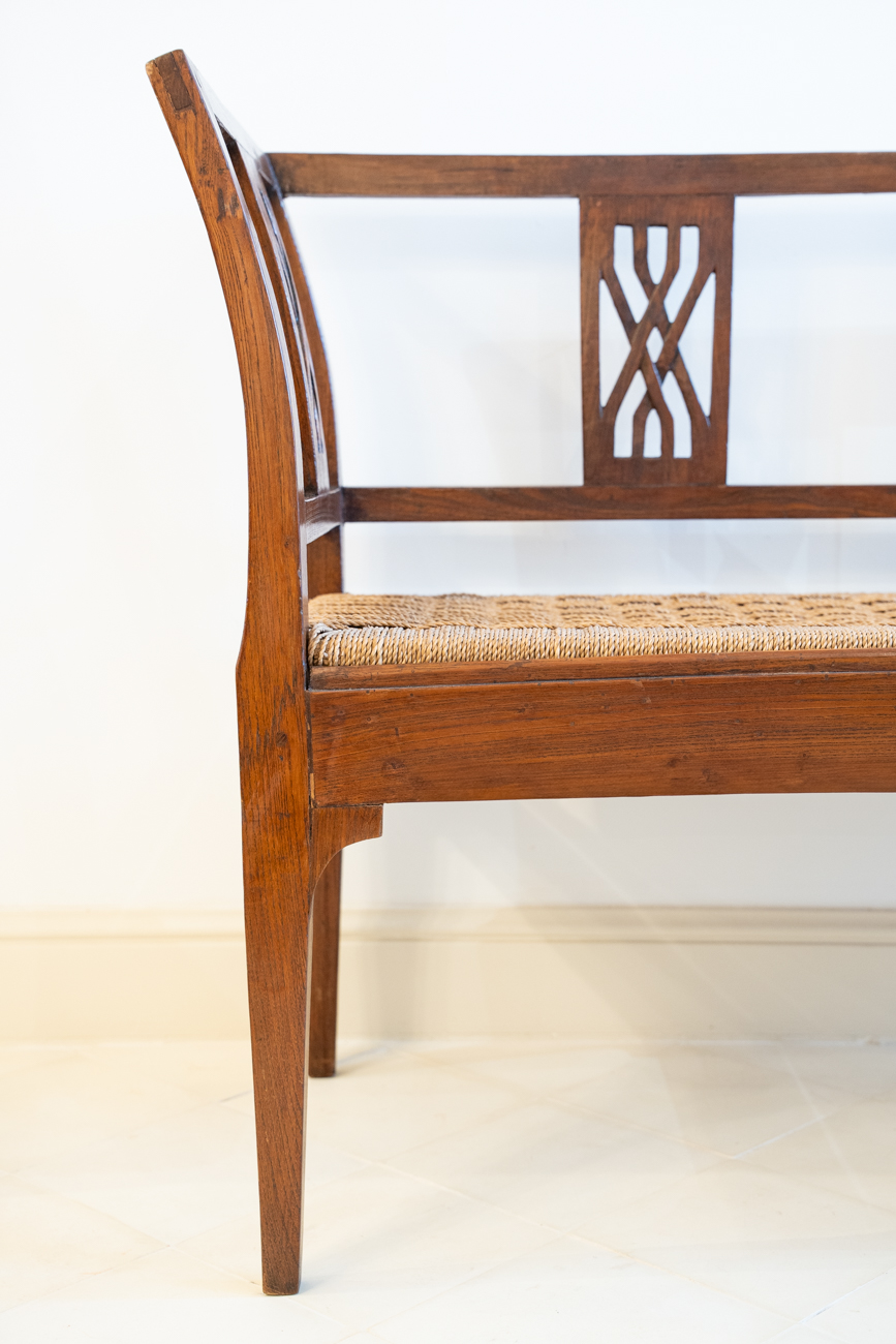 Italia, mediados del siglo XIX. 180 cm de largo, 48 cm de profundidad y 82 cm de alto. Altura del asiento, 45 cm.